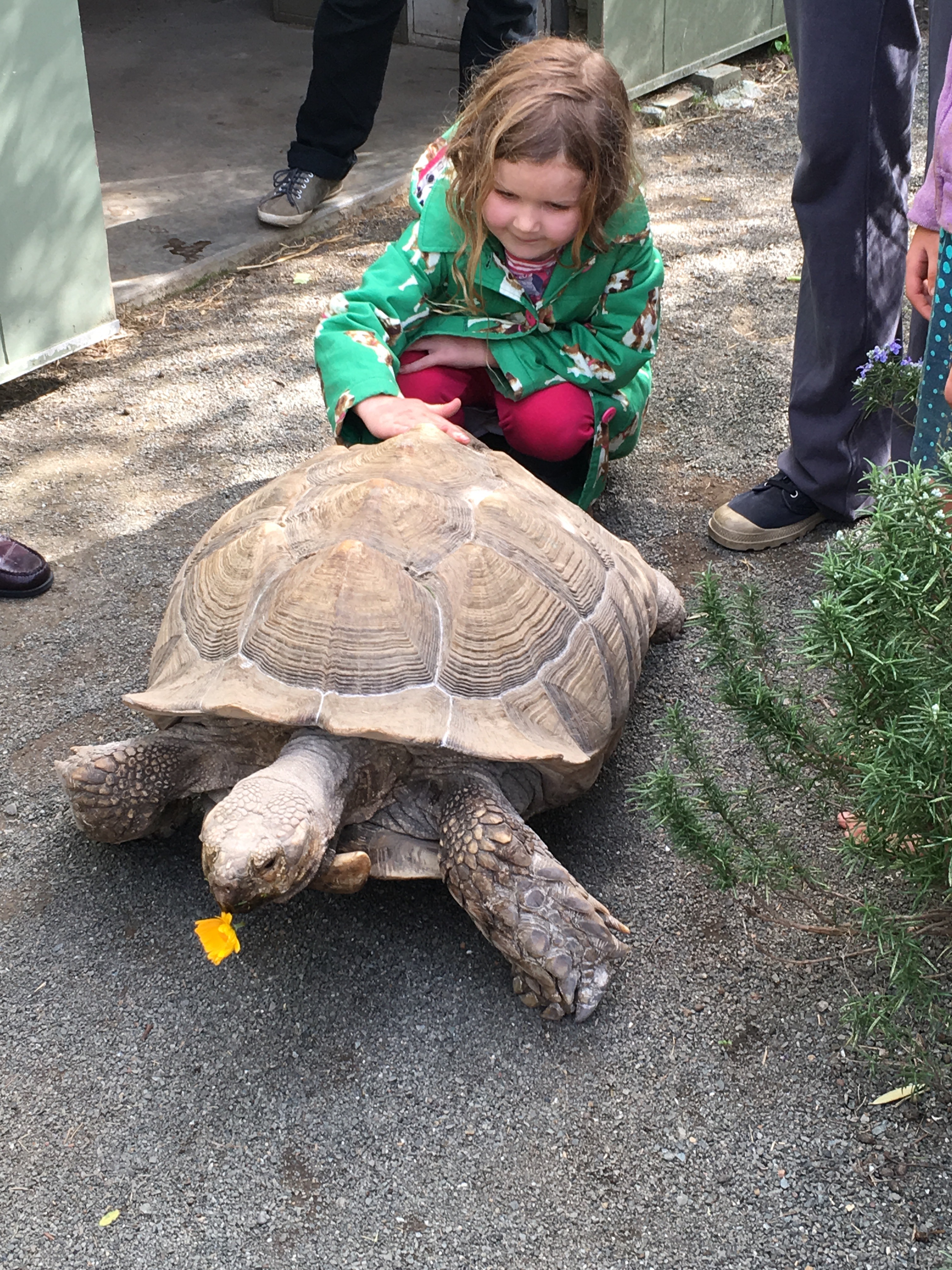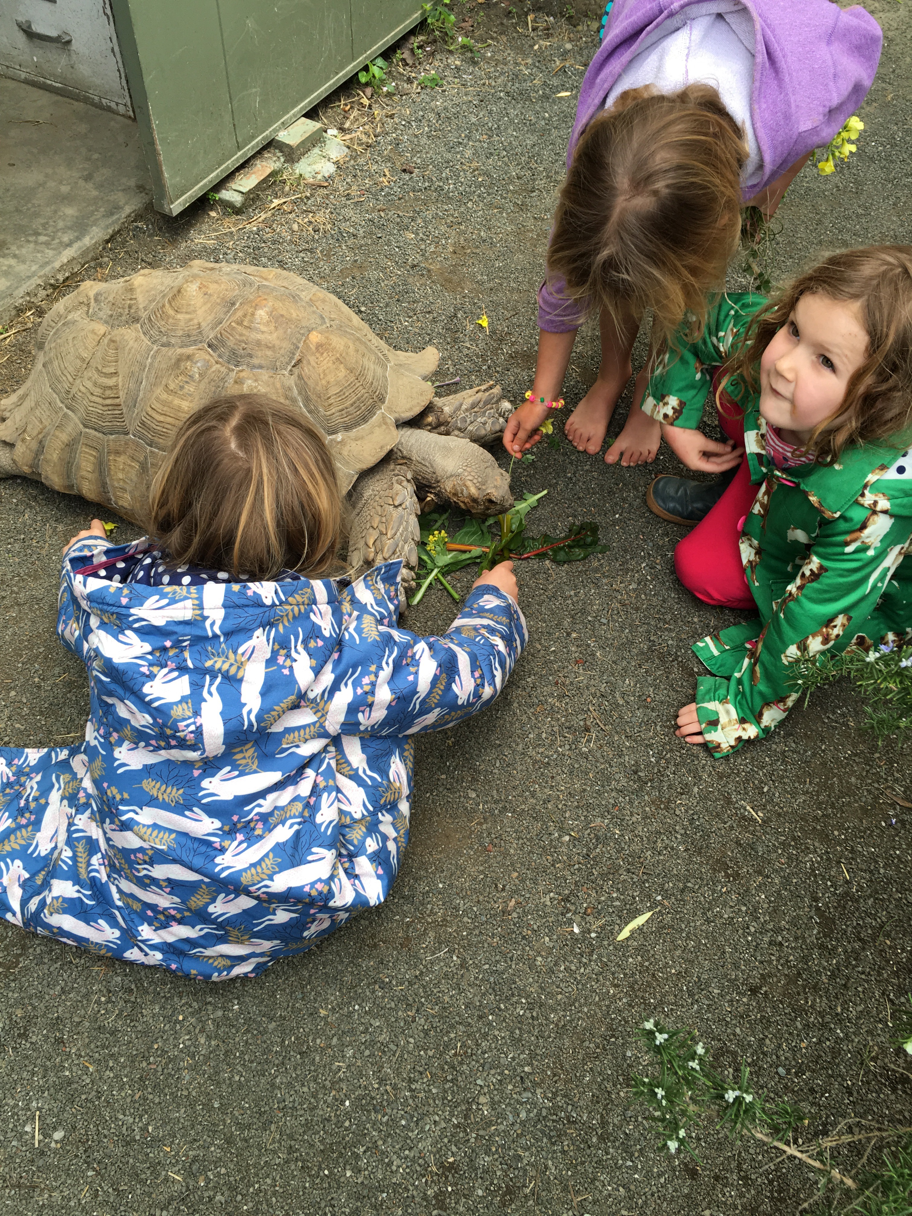 There’s also a giant African tortoise named Kitty across the street who we joined Allison to visit and feed after pick up