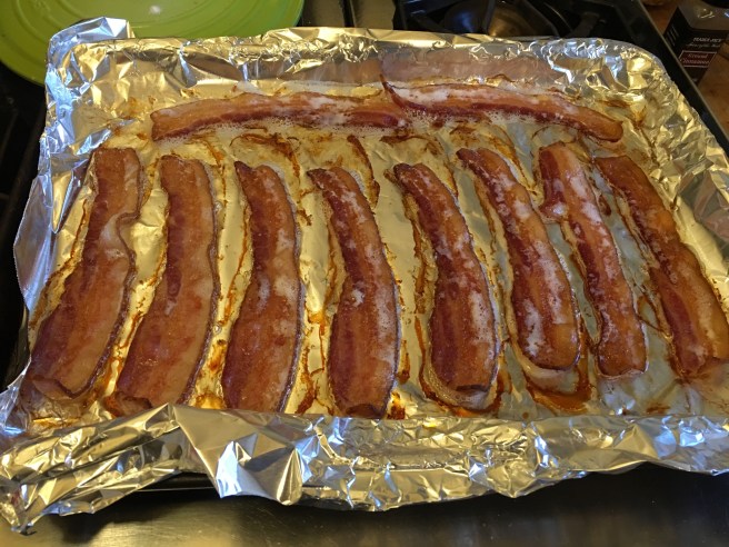 We also like bacon, but I can’t be standing over the darn pan flipping and watching. Meet my friend oven-cooked bacon: