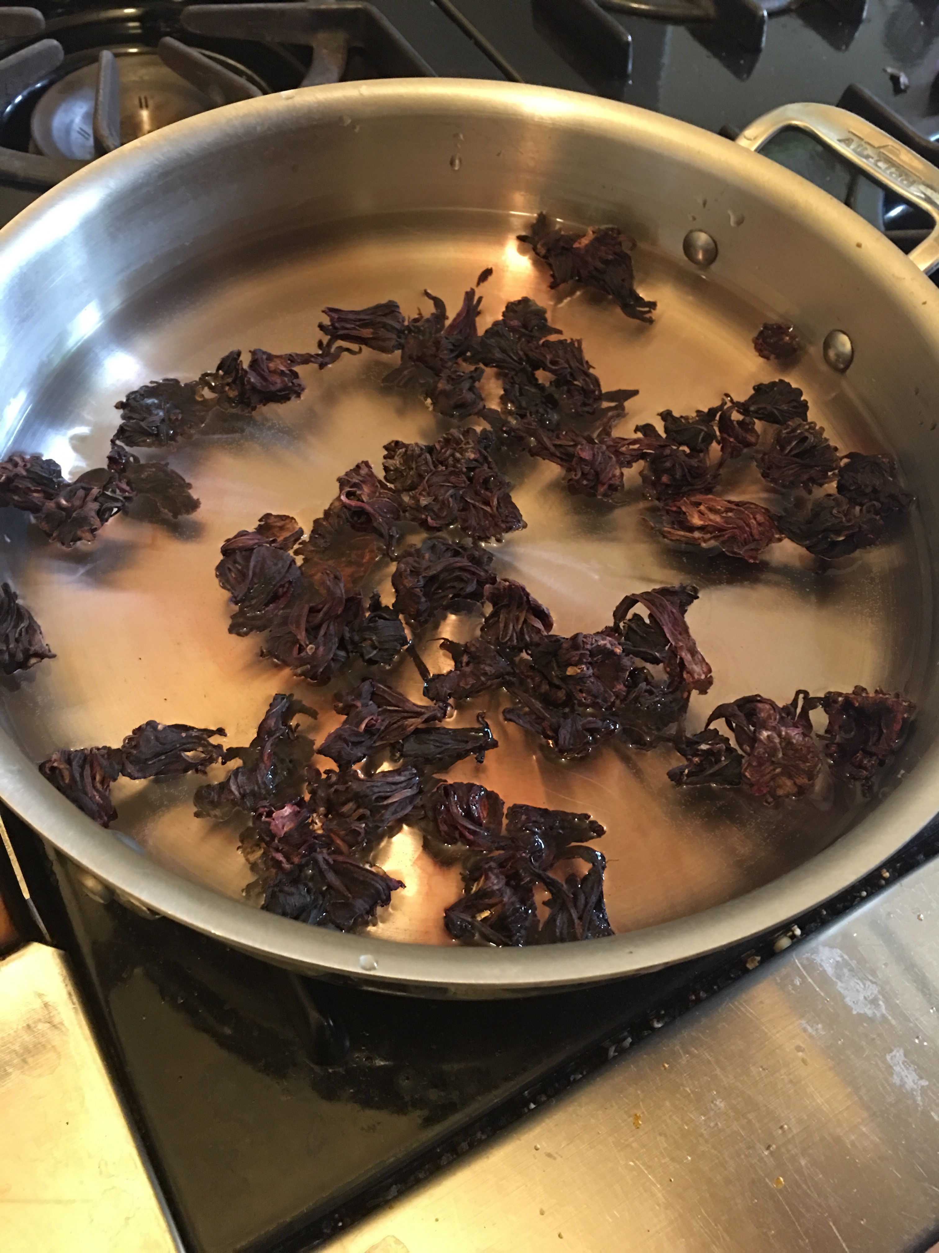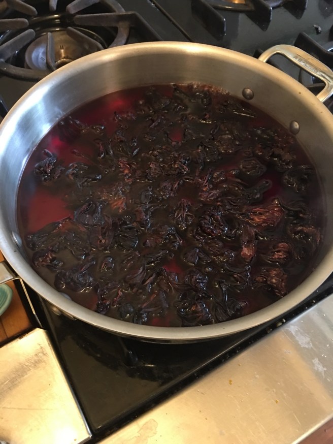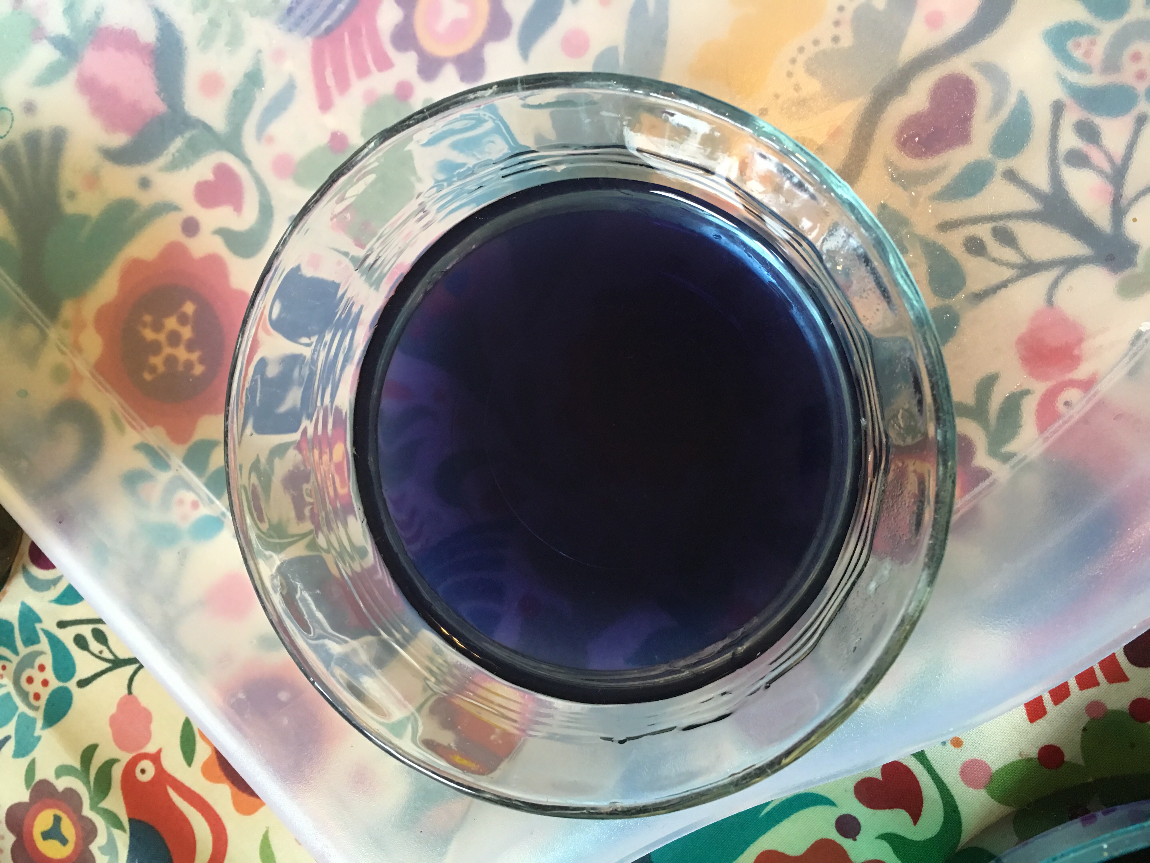 Sometimes I do lots of research and gather all the appropriate materials before starting a project. Sometimes I just wing it. This is the latter in action. While the little fellows were dyeing eggs with Paas, I boiled up a pot of red cabbage, and another of dried hibiscus flowers. The cabbage was pretty much a bust for dye, though fun for doing acid/alkaline color-changing magic(more on that in a moment). But the hibiscus was totally unexpected!