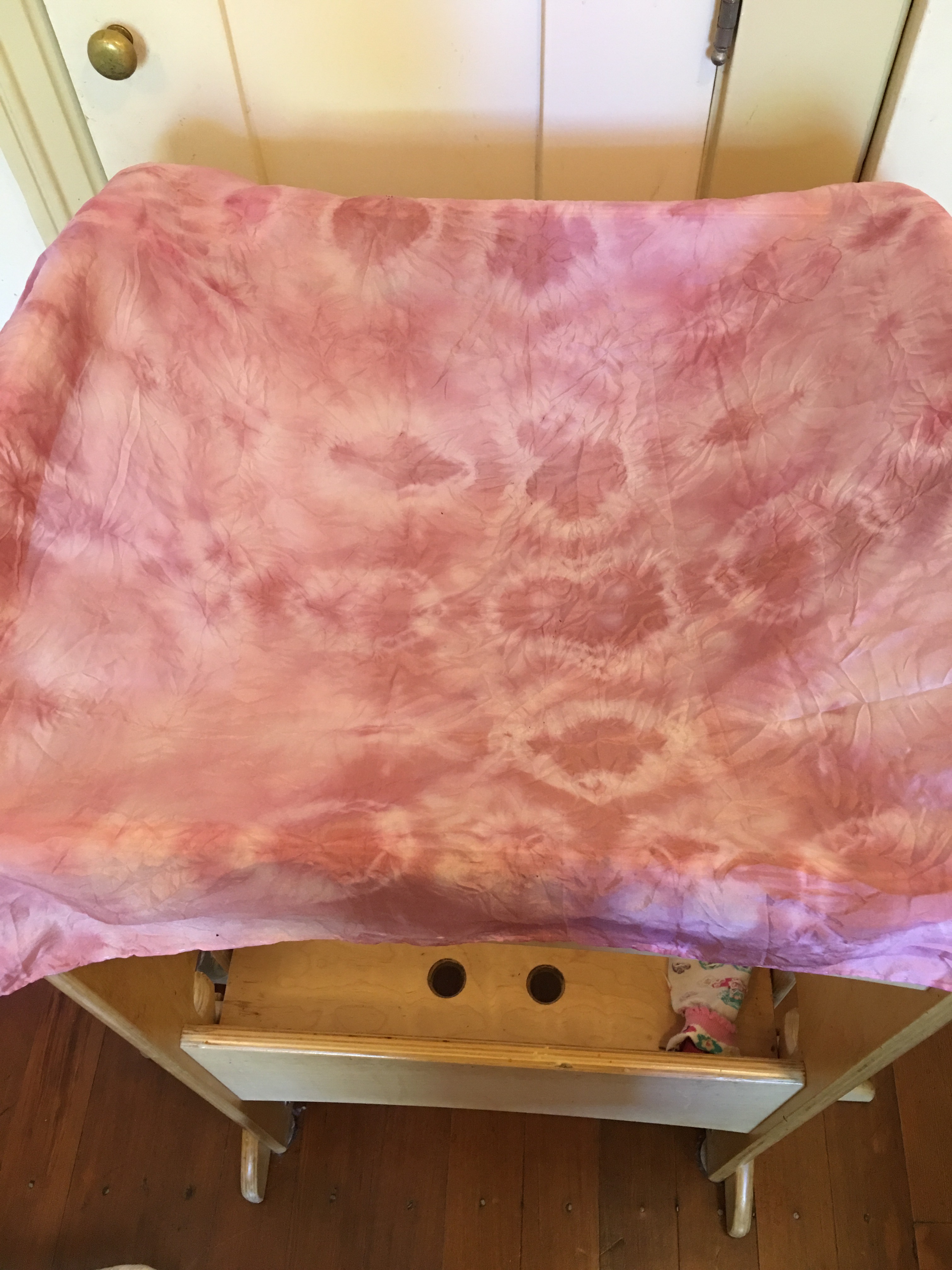 The result was much more what I expected with the eggs! A lovely muted pinky-purple. It is dry, but I’m not sure if it will be color-fast, or oxidize over time, but that’s part of the fun!